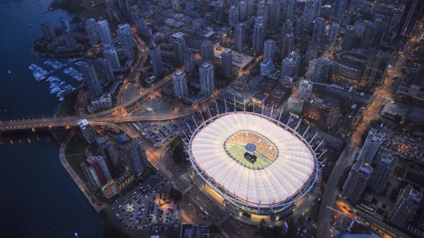 Im Zentrum steht der BC Place Vancouver, eines der bekanntesten Stadien Kanadas. Der BC Place wurde 1983 eröffnet und vor den Olympischen Winterspielen 2010 renoviert. Hier fand das Finale der FIFA Frauen-Weltmeisterschaft 2025™ statt, in dem die Vereinigten Staaten Japan besiegten. Das Stadion ist auch die Heimat der BC Lions, die sechsmaliger CFL-Meister sind. Der BC Place liegt am Ufer des False Creek in der Innenstadt von Vancouver und bietet Fans und Partnern Hotels, Restaurants, Unterhaltungsmöglichkeiten und Attraktionen am Wasser in unmittelbarer Nähe.